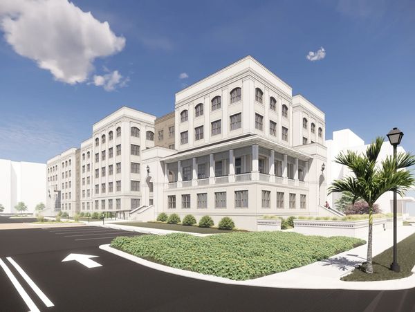 Large apartment building in the heart of Charleston, SC featuring 77 family units, a large resident retreat, gym, business office, and library/tech space.